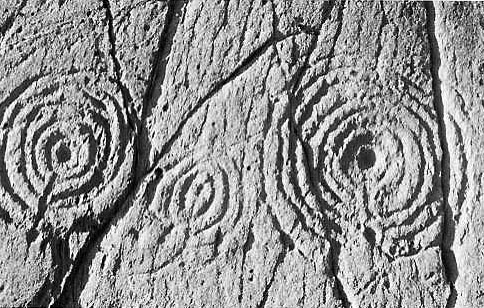 Stone carvings of labyrinth figures from Argyll, Scotland, dating from the Neolithic or Early Bronze Age.